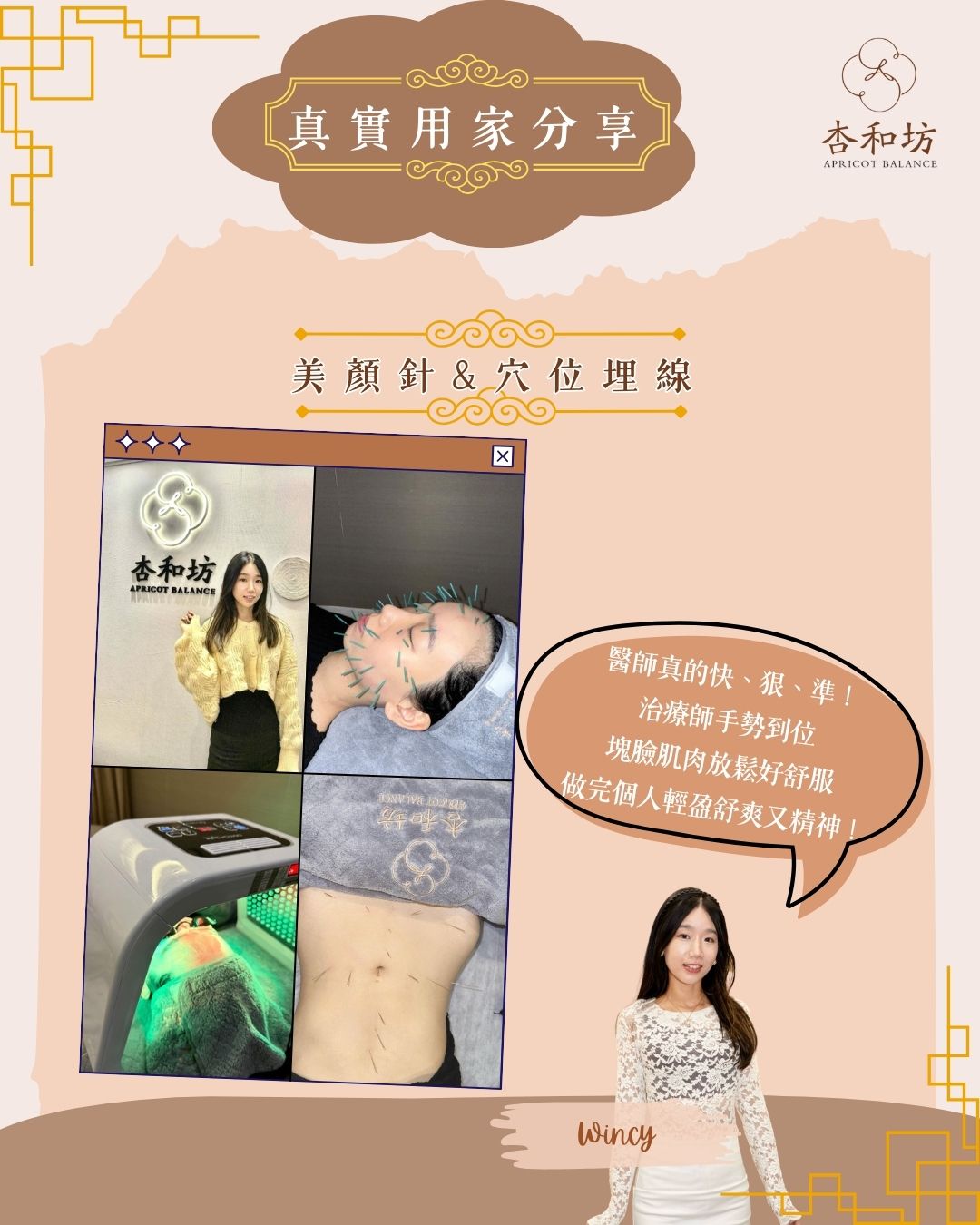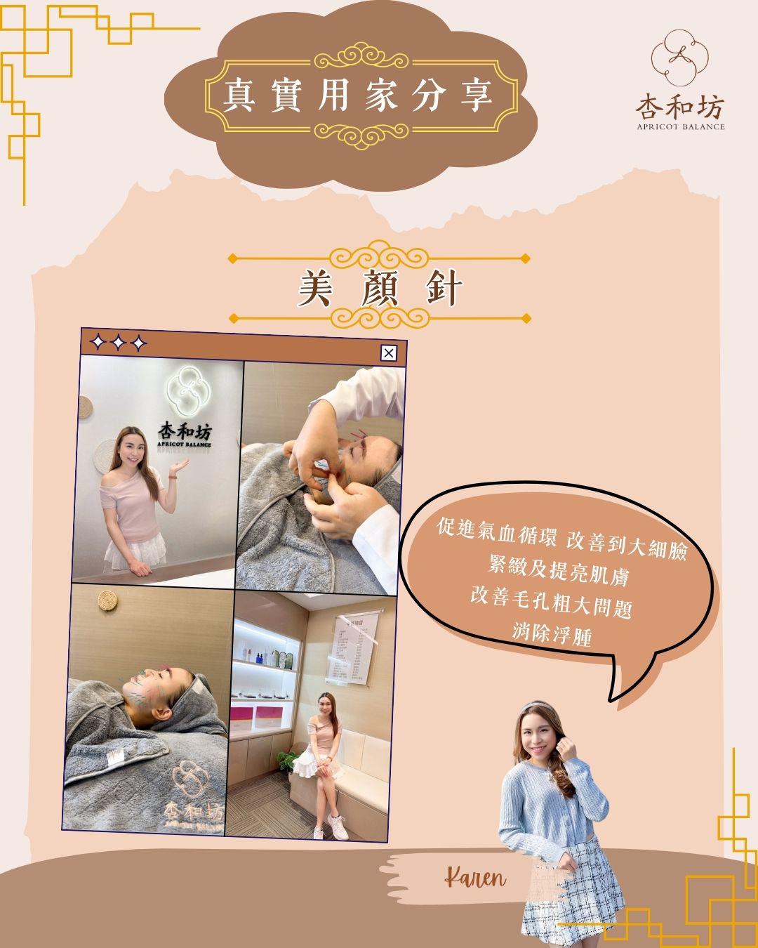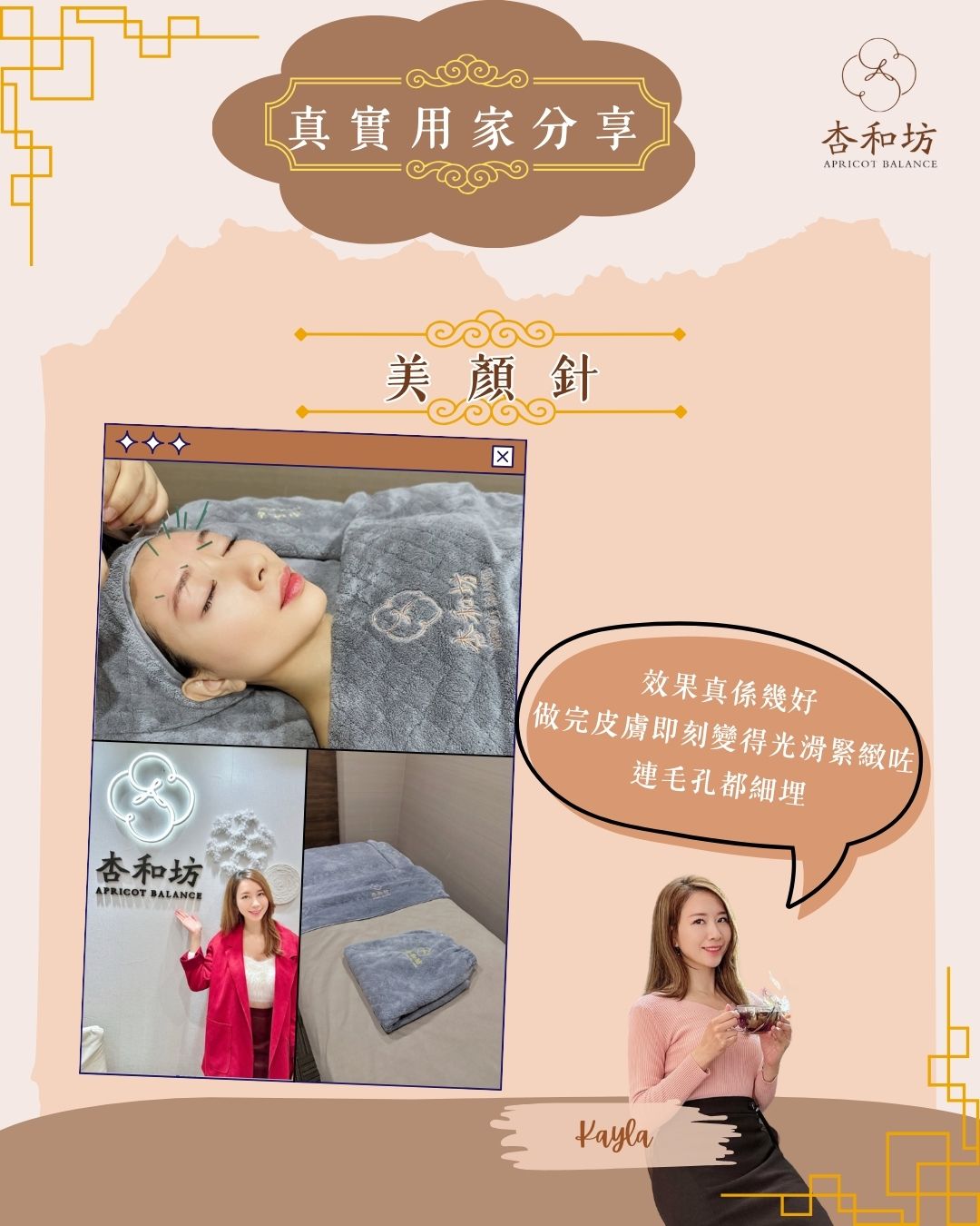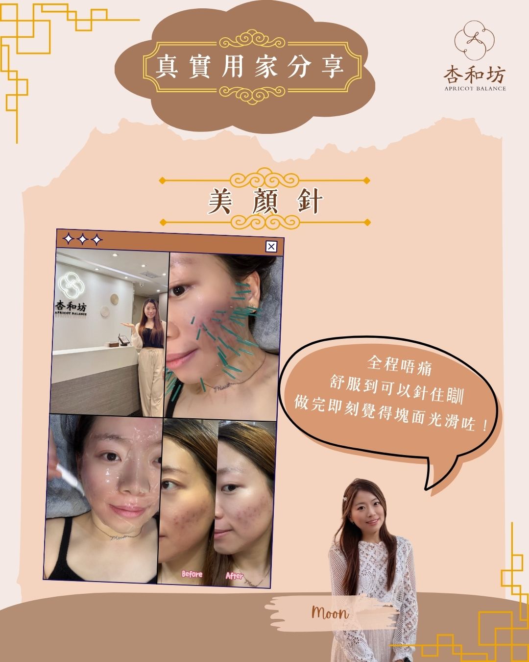 試完美顏針兩次之後,面色真係白淨返好多,而且膚質變滑,連朋友都問我係咪轉咗護膚品,其實只係去咗杏和坊啫!」